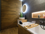 Koupelna je zvětšená, je zde přípojka na pračku a sušičku.