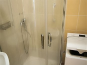 Kombinované bytové jádro koupelna se sprchovým koutem, prostorem na pračku, obklady a dlažba.