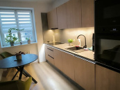 Byt prošel celkovou rekonstrukcí nová koupelna s obklady a dlažbou, sprchovým koutem, toaleta zvlášť, v kuchyni je nová kuchyňská linka s vestavěnými spotřebiči lednice s mrazákem, myčka, elektrická trouba a indukční varná deska, digestoř.