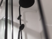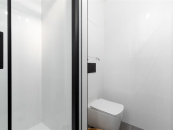 V koupelně jsou obklady a dlažba, které k sobě ladí, nová sanita sprchový kout a závěsná toaleta, která je součástí koupelny.